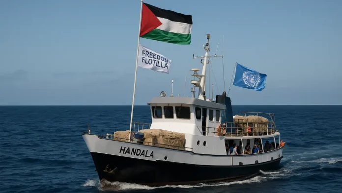 A most induló hajó, amely a Handala nevet viseli, szimbolikus jelentőségű: Handala a palesztin nép ellenállásának egyik legismertebb jelképe, egy kisfiú, aki hátat fordít a világnak – ezzel kifejezve a reménytelenséget és az igazságtalanságot. A hajó az olaszországi Marina di Carrarából indult útnak, és a tervek szerint július 18-án érinti a dél-olasz Gallipoli kikötőjét, mielőtt keleti irányba fordulna.