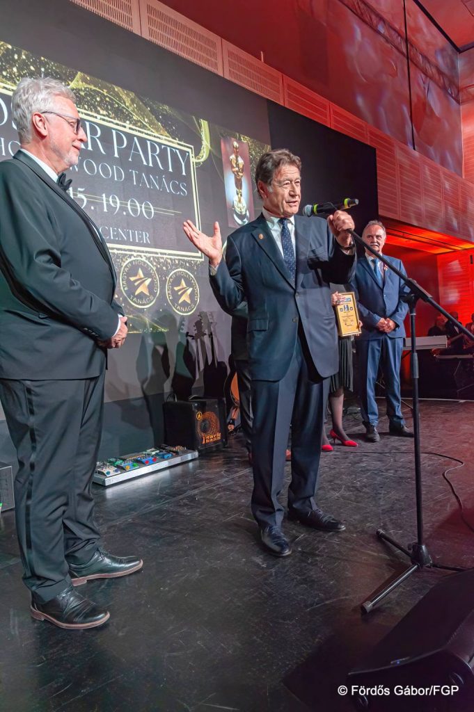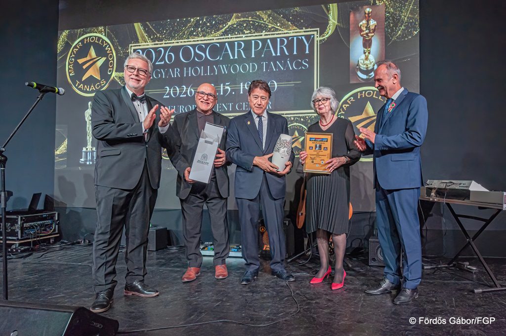 Az idei Adolph Zukor-díjat a Magyar Hollywood Tanács exkluzív, mintegy 300 fős, ültetett díszvacsorával egybekötött Oscar gálaestjén Robert Lantos és Pigniczky Réka vehette át az Europa Event Centerben.