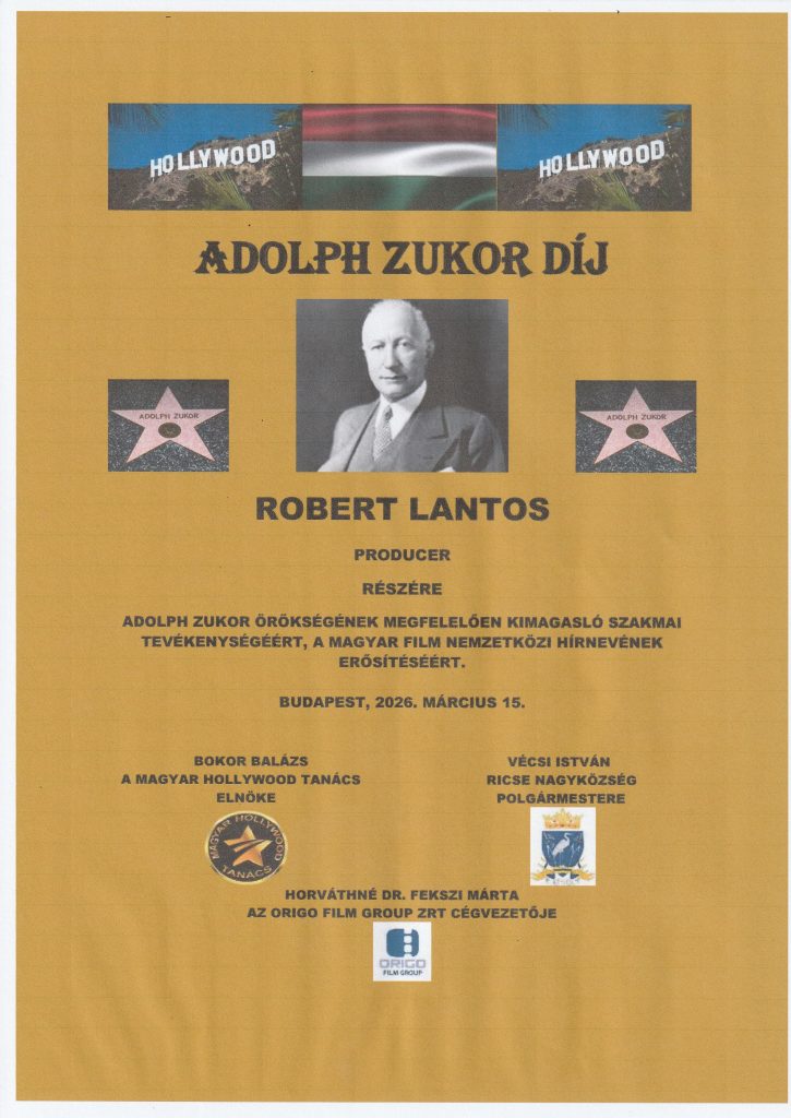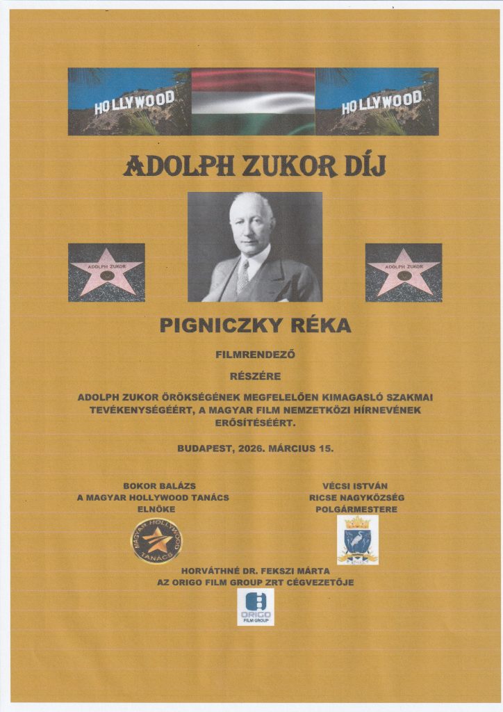 Az Adolph Zukor-díjat a Magyar Hollywood Tanács Ricse Nagyközség Önkormányzatával közösen alapította 2018-ban, a Paramount Pictures magyar származású alapítója, Zukor Adolf emléke előtt tisztelegve. A kitüntetést olyan alkotók és szakemberek kaphatják meg, akik munkásságukkal jelentősen hozzájárultak a magyar filmművészet hírnevének öregbítéséhez, vagy életútjukkal a Zukorra is jellemző hitet és akaraterőt példázzák. Az elmúlt nyolc évben 26-an részesültek az elismerésben, köztük Szabó István, Rófusz ferenc, Deák Kristóf Oscar díjas rendezők vagy Herendi Gábor, Csupó Gábor, Enyedi Ildikó, Sándor Pál. Köszöntjük a jelen levő korábbi Adolph Zukor-díjasokat: Roby Lakatost, Horváth Károly Charliet, Koltai Róbertet, Koltai Lajost, Kamarás Ivánt.