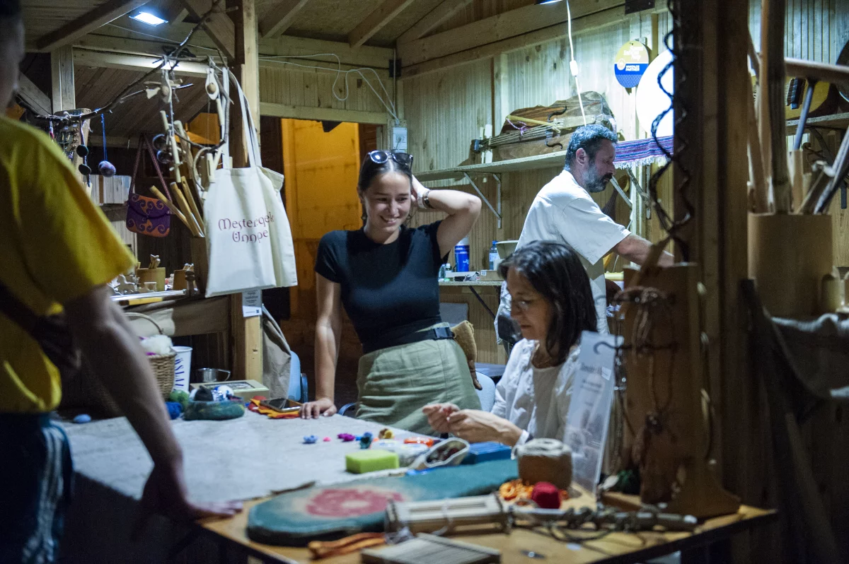 A vásári forgatagban a látogatók testközelből találkozhattak a magyar népi mesterségekkel: a fazekas korongja körül formálódó edényekkel, a kézzel szőtt vásznakkal, bőrdíszműves remekekkel és kovácsoltvas alkotásokkal. Az aprólékos munkafolyamatokat nemcsak nézni, de sok helyen ki is lehetett próbálni – a gyerekek és a felnőttek egyaránt lelkesen merültek bele a hagyományok világába.