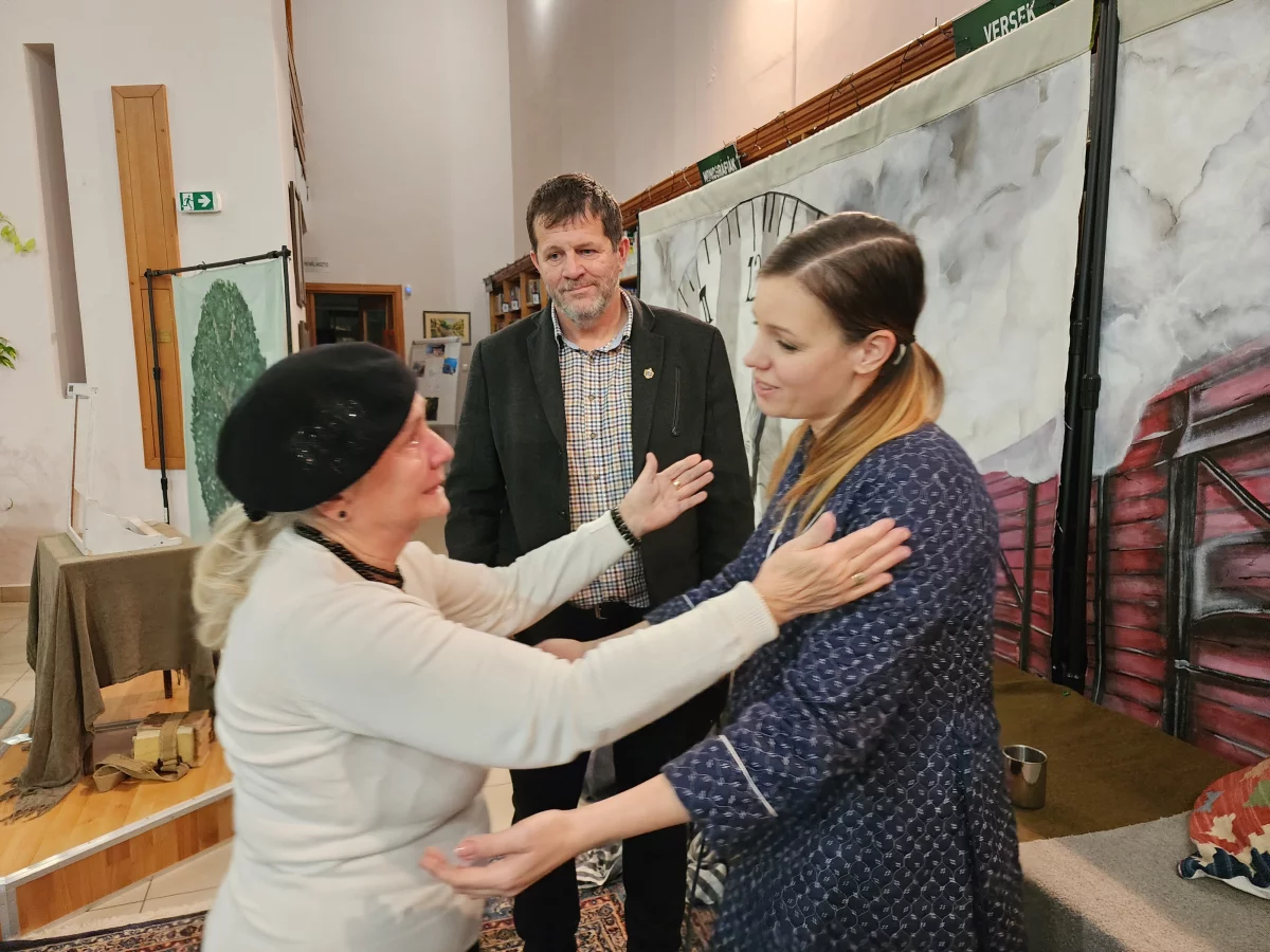 Igazából mindenhol lehet színházat csinálni, persze az igazi a köszínház, de ha az nincs, akkor kis kreativitással no és sok munkával bárhol lehet jó színházat csinálni. Nekünk meg különösen szerencsénk volt, hiszen a helyi könyvtár vezetősége és munkatársai mint: Baldovszky-Kovács Dóra igazgatónő, Kántor Krisztián könyvtáros és munkatársai valamint Jámbor Katalin és dr. Mészáros Jánosné szívvel-lélekkel segítették a munkánkat.