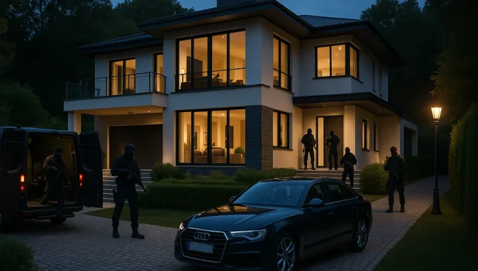 Egy csendes, exkluzív budai övezetben kommandósok jelentek meg kora reggel. A célpont egy modern, minden luxussal felszerelt villa volt. A házkutatás során diplomáciai kinézetű iratok, különleges rendszámok, valamint nagy összegű készpénz és elektronikus bizonyítékok kerültek elő.