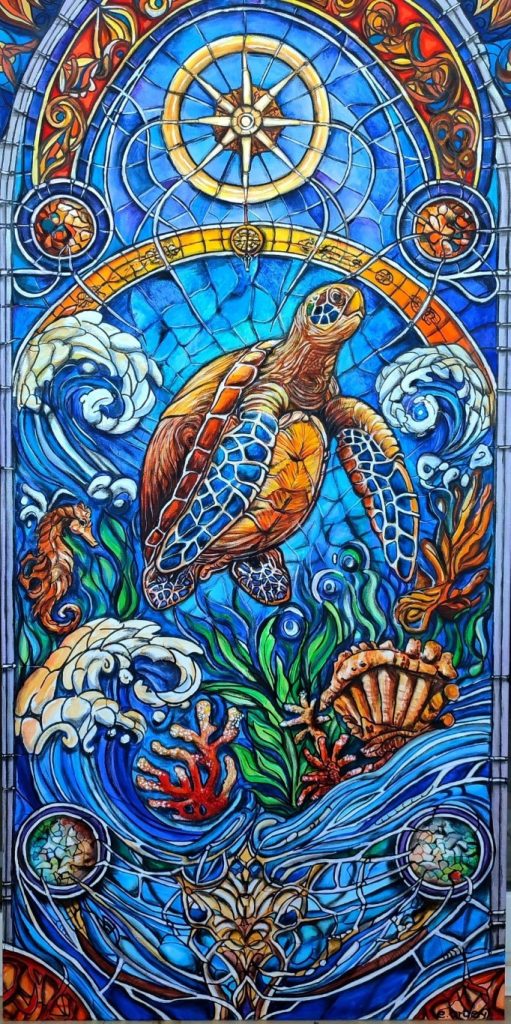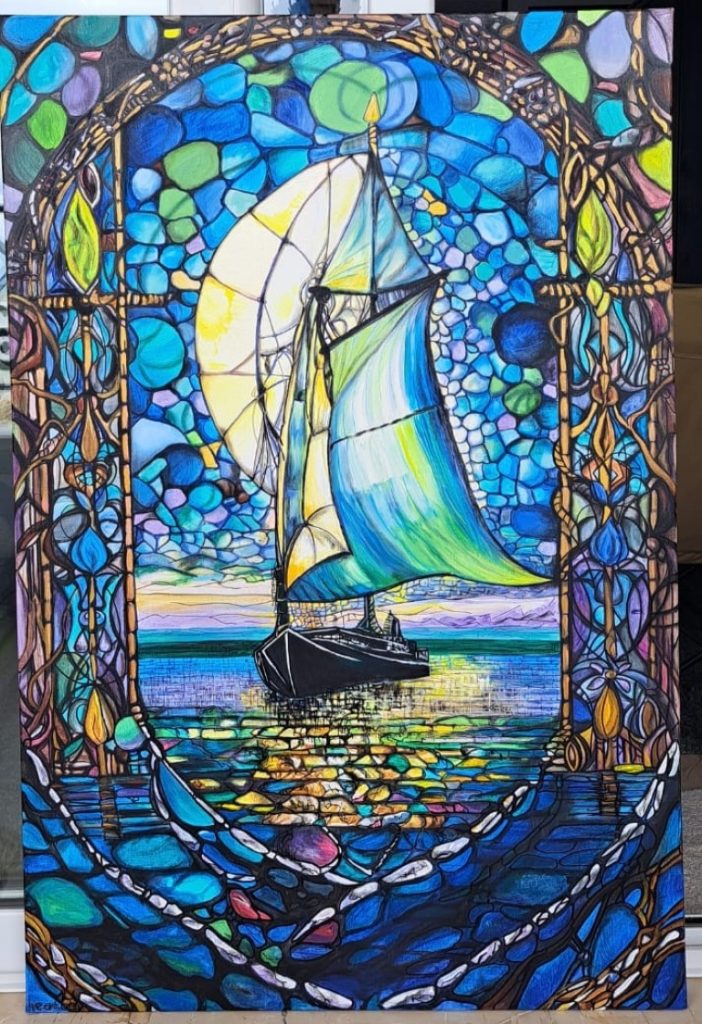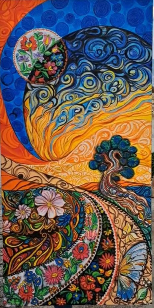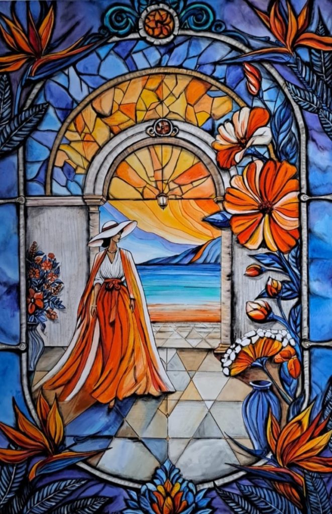 Ugyanakkor az alkotói spektrumomat tudatosan nem szűkítem le. A szigeti lét különösen inspiráló számomra: szeretem felfedezni az elhagyott, hétköznapi tárgyakban rejlő lehetőségeket, és új jelentéssel felruházni őket. Így gyakran festek különféle felületekre is, például bútorokra, faelemekre, régi ablakrészekre vagy akár festőpalettákra. Különösen közel áll hozzám a tengerparton talált kavicsokra való festés is, amely a mikroművészet finom, kihívásokkal teli, ugyanakkor rendkívül élvezetes formája. A jövőben szeretném tovább bővíteni technikai eszköztáramat: terveim között szerepel az olajfestészet alapos, magabiztos elsajátítása is.