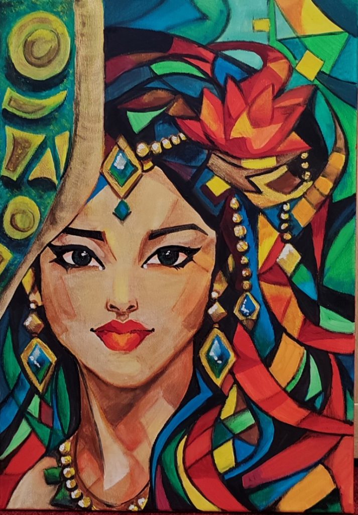 – Elsősorban akrilfestékkel dolgozom, leggyakrabban feszített vászonra, jelenleg ez a technika áll hozzám a legközelebb, és ez határozza meg leginkább a munkáimat.